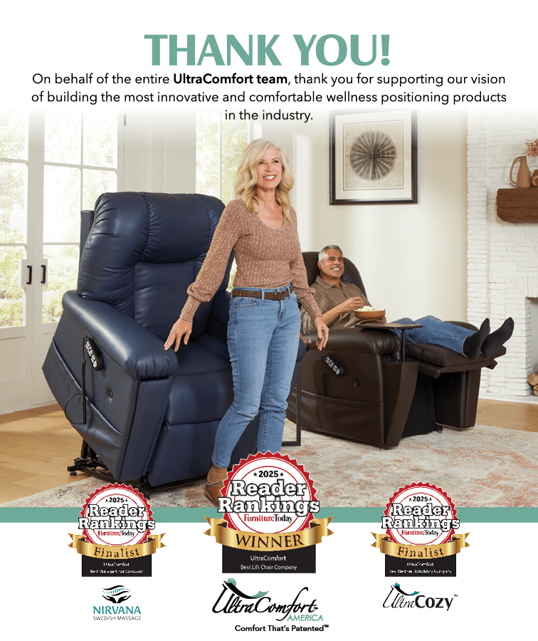 The Furniture Today Readers’ Rankings are determined by industry-wide voting, making these recognitions a strong endorsement of UltraComfort’s ongoing commitment to innovation, quality, and life-enhancing comfort.